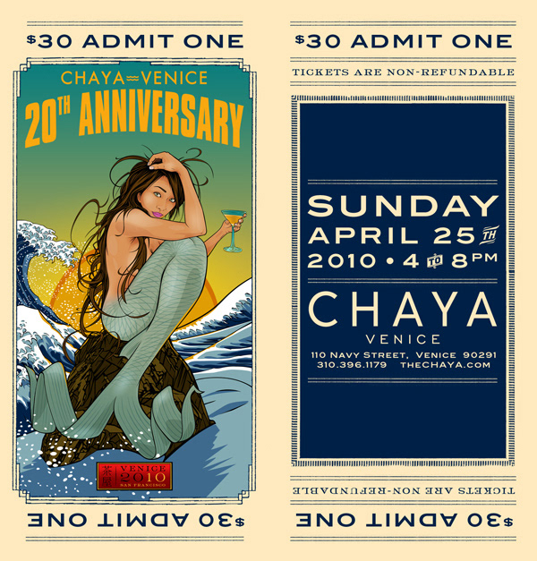 Visual Branding for CHAYA Venice's 20th Anniversary event. All creative, design, illustration and production executed by Erik Ries of ETC.STUDIOS.